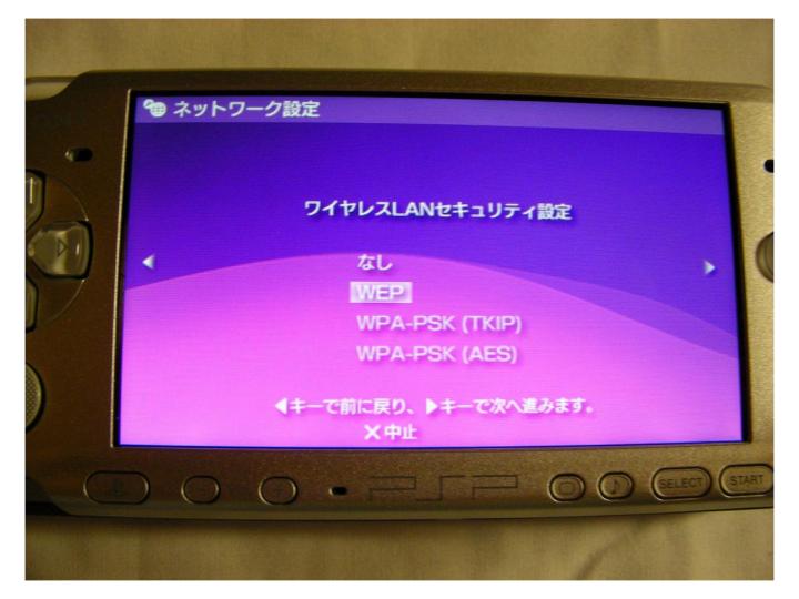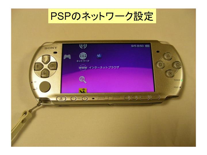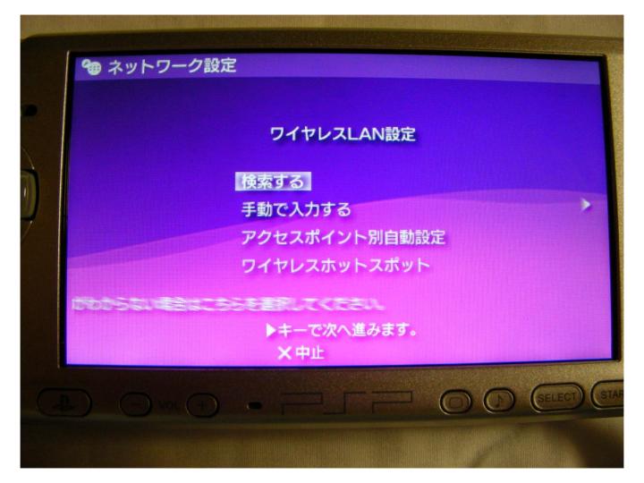 | 4)次に、PSPから無線ルーターにアクセスするように設定します。 PSPの電源を入れます。 |