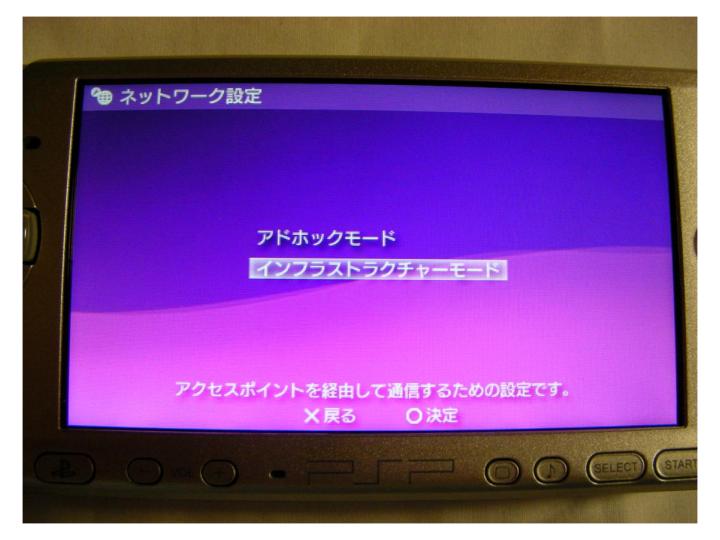 | 6) 「インフラストラクチャーモード」を選びます。 |