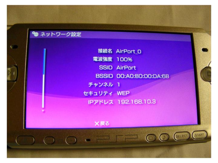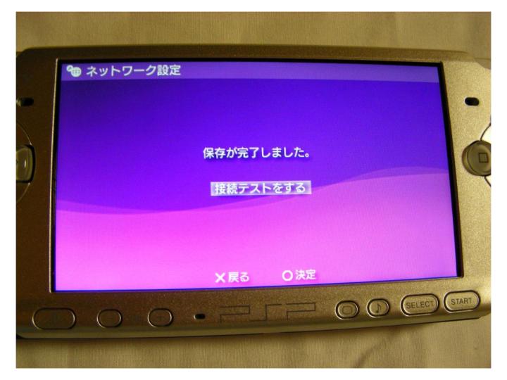 | 21) テストが成功すると上のような画面が出ます。 ★これでPSPの設定は終わりです。 ★ここまでの設定は、1回すれば次はする必要はありません。 |