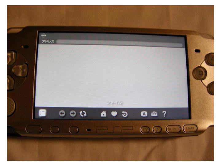 | 25) ブラウザーがたちあがります。 下のパーにある、一番左側のアイコンを選択します。 メニューの「アドレス入力」を選択します。(←これは写真なし) |
