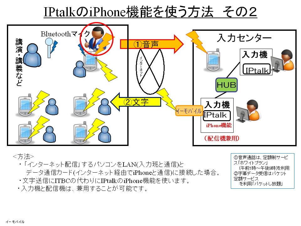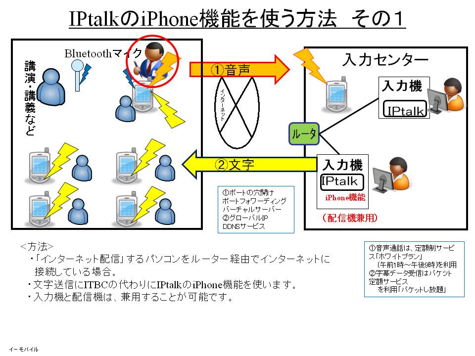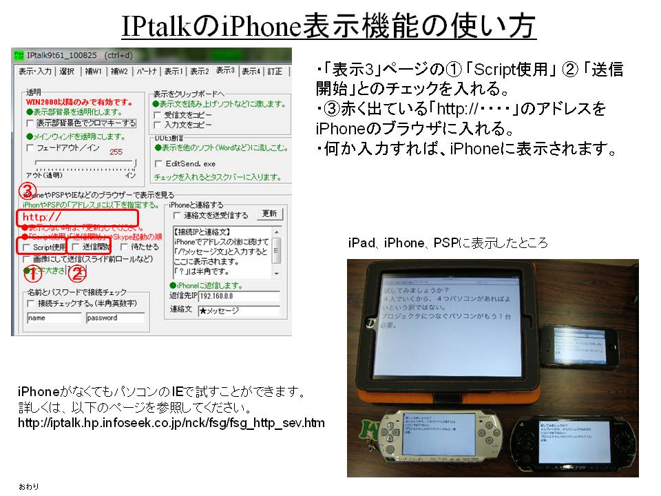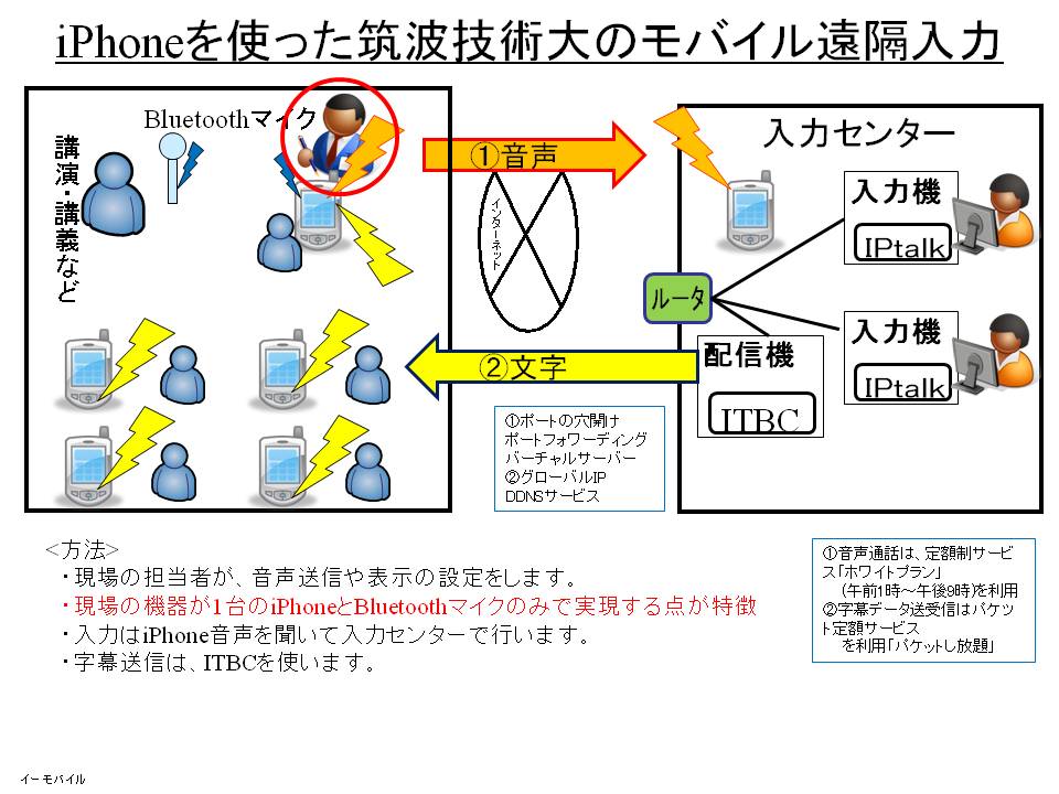 「iPhoneやPSPやIEなどのブラウザで表示を見る」機能(以下「iPhone機能」と記述)を「モバイル型遠隔情報保障システム」でITBCの代わりに使う場合の簡単な説明をします。