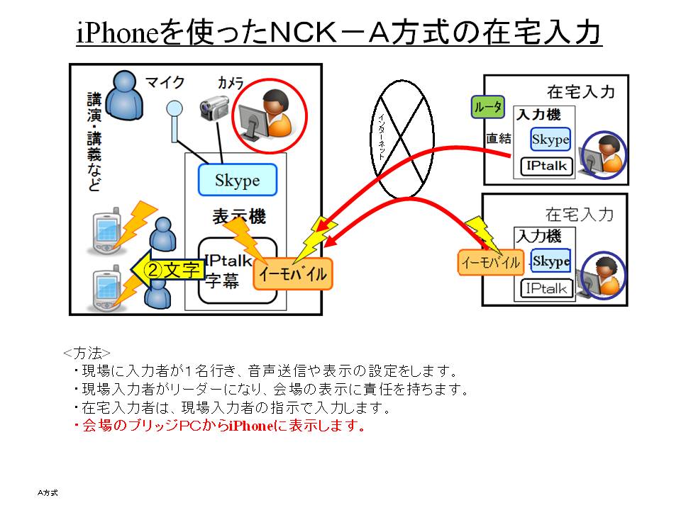 「モバイル型遠隔情報保障システム」は、一カ所に入力者が集まって入力する方法、センター入力です。