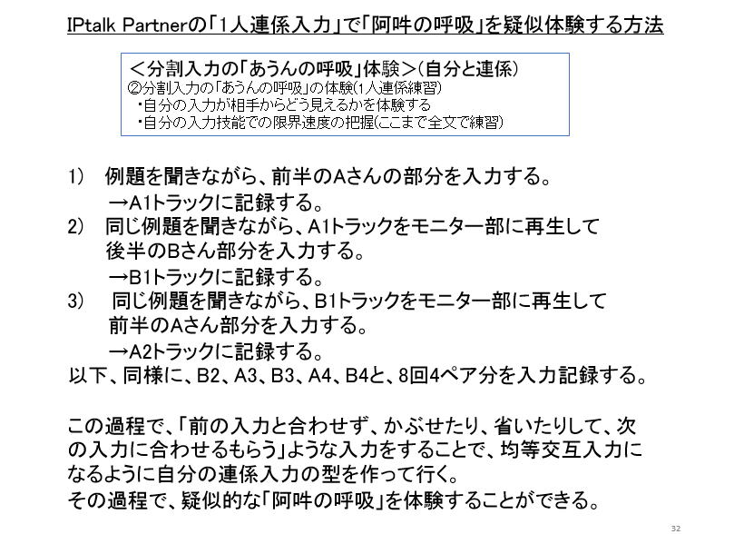 IPtalk_Partnerを使った「1人連係入力練習」は、