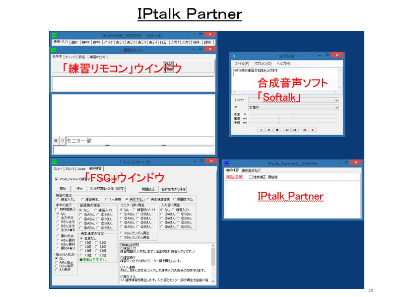 IPtalk_Partnerは、連係入力の練習が1人でできることが特徴です。