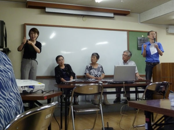 | 【概要】 日 時:平成24年8月12日(日) 午後1時30分〜4時 場 所:東京都障害者福祉会館 2階 教室 参加者:25名(聴障者 11名、聴者 14名) 主催者:7名 通訳:パソコン文字通訳4名、手話2名 内 容: